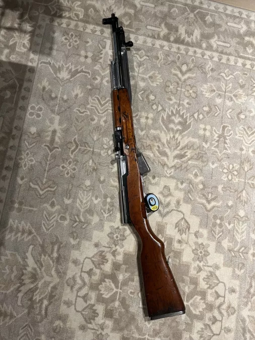 Mechanically sound and exactly what you want in a collectible-grade shooter: vivid chrome, crisp markings, and the distinctive parade profile that sets it apart from a standard blued Type 56. Provenance to a specific unit isn’t claimed (as is typical), so value it for the configuration, the WJ-marked magazine, and the near-complete matching numbers. If you enjoy SKS history with a ceremonial twist, this is a tidy, eye-catching example.