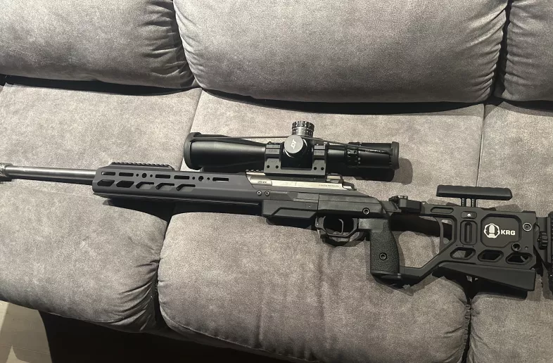 Ultimatum Deadline SA Action, IBI custom barrel, Triggertech diamond flat trigger, KRG Whiskey 3 chassis + Foldable Stock + Enclosed Forend (still have the original forend as well) + 2 arcs rails, Insite Arm muzzle brake with tuner, DNT 7-35 scope, 2 MDT 10-round magazines.