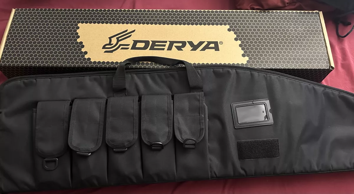 Black soft shell rifle case with mag pockets