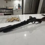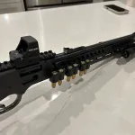 Ranger Point Precision V2 forend, ammo quiver, and picatinny scope mount. Holosun 507C optic. Streamlight ProTac HL-X with pressure pad. Henry factory walnut stock with rubber butt pad.
