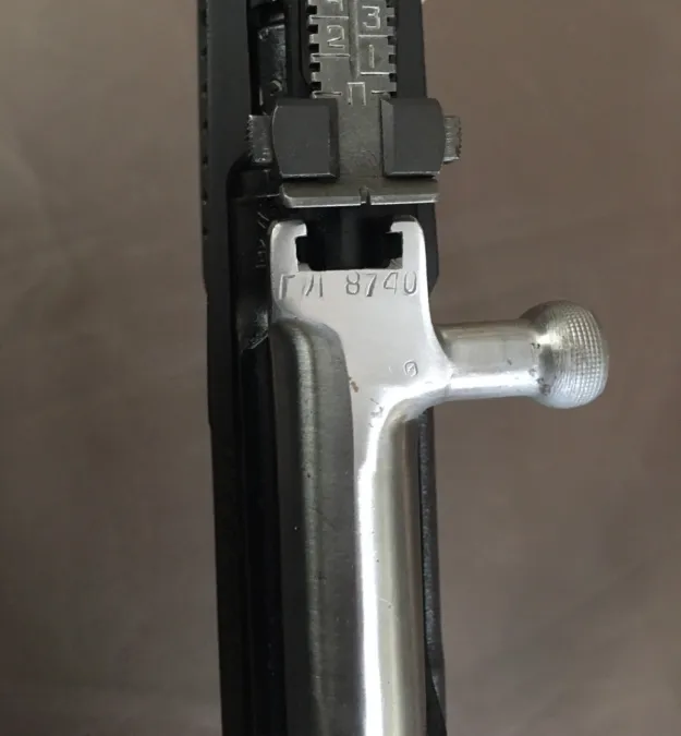 Samozaryadny Karabin Simonova Russian manufactured 7.62×39 caliber carbine. This version was produced at the Tula factory (arrow in star factory symbol) in 1954. This rifle is in excellent shape with the rifling in great condition. Just minor handling/storage blemishes. I have not fired the rifle and I have no way of confirming its history, but it looks to be in great condition. Numbers matching with the exception of the missing wooden stock (which I do not have possession).