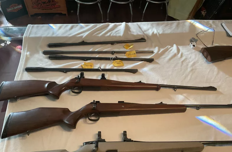 Rare Euro style switch barrel rifles with 6 barrels total, all can be seen at Wild West in WEM, see Travis, comes with universal mags. SERIOUS OFFERS CONSIDERED. left some of my Steyrs there too.
