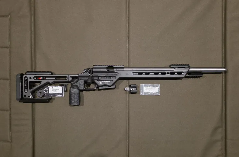 Bergara B14R .22LR barreled action B14RBA003 with a 20-inch MTU profile stainless steel barrel and a 1/2-28 TPI threaded muzzle in a MasterPiece Arms BA Comp chassis. Factory trigger is the Bergara Performance trigger adjustment range 1.5 to 4.0 lbs. All in new unfired condition. Assembled but decided to keep another MPA .22LR build for PRS.
