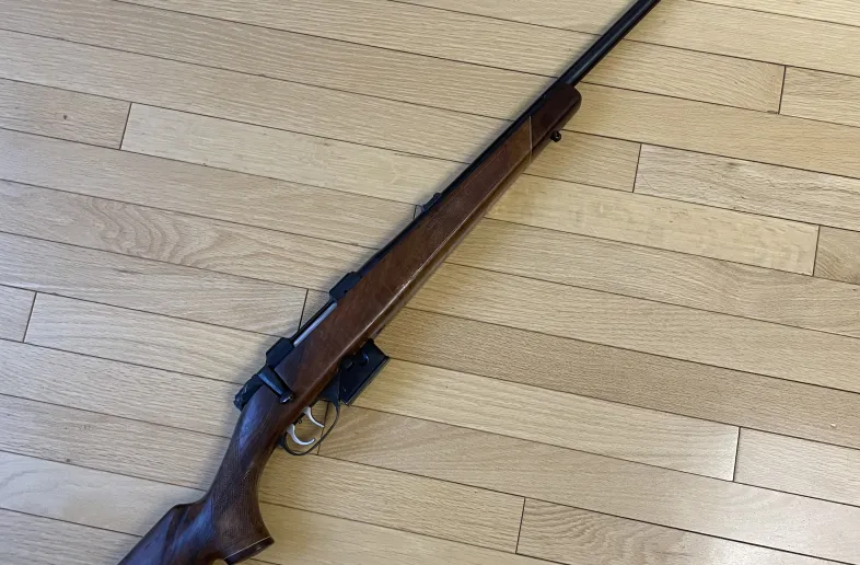 BRNO Fox Model 2 Deluxe Sporter chambered in 222 Remington, Fastastic Figured Walnut Stock , Rosewood Forend Tip and Pistol Grip Cap, Mauser Action with Controlled Round Feed and Claw Extractor , Double Set Triggers, 24 Inch Barrel and Detachable Magazine. Very Low Use with not many rounds through it. Very Good To Excellent Condition
