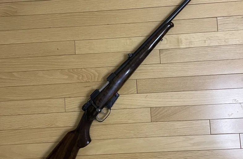 BRNO ZKW465 Chambered in Rare 22 HORNET , Fantastic Figured Dark Walnut Stock, SCHNABEL Fore End ,Mauser Action with Controlled Round Feed , Double Set Triggers, Factory 3 Leaf Express Sights , Detachable Magazine, Factory Butt Plate . Excellent Original Condition. Very Low Use with Few Rounds Fired.