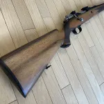 Beautiful FN Deluxe SPORTER Chambered in. 30 06. Manufactured in Belgium by FABRIQUE NATIONALE (FN). Fantastic Figured Walnut Stock. Mauser Action with Controlled Round Feed and Claw Extractor. 24 Inch Barrel. High polished Blueing. Factory Butt pad and pistol grip cap. Leupold Bases.