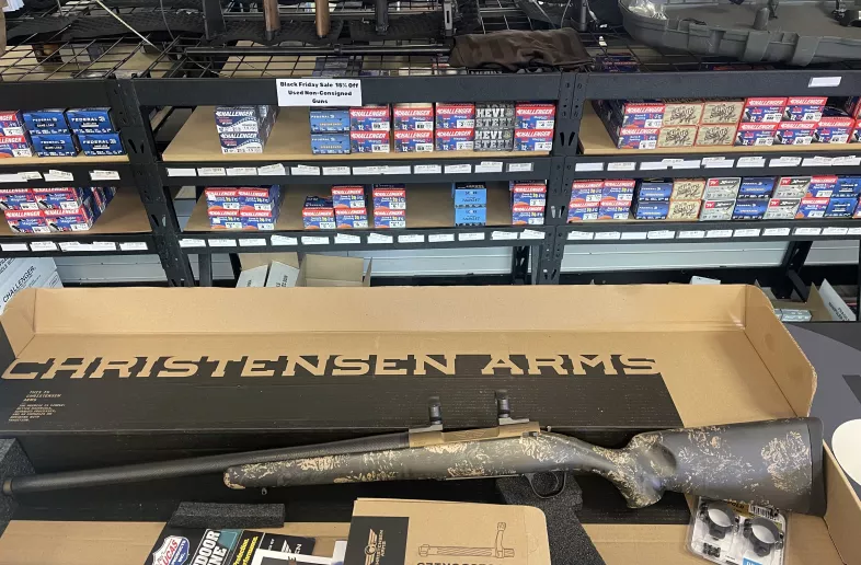 Here we have a very nice Christensen Arms Ridgeline Burnt bronze carbon wrapped barrel with muzzle break, in 300 win mag with two sets of Leupold rings and maybe 2 boxes of ammo through the rifle . Customer is selling due to shoulder surgery.