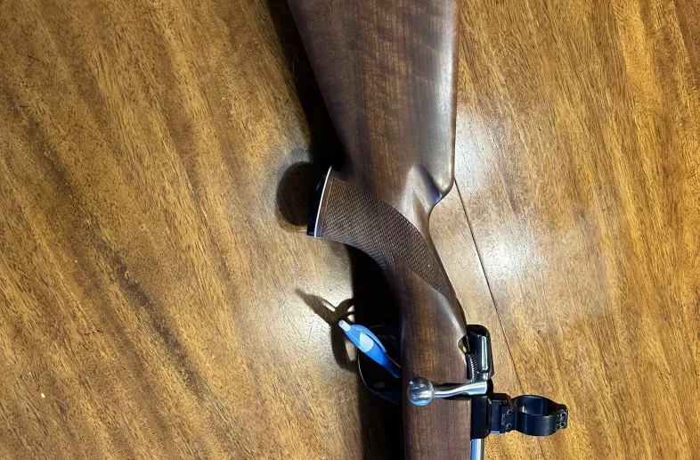 Husqvarna Model 458 fullstock 308 Win in excellent condition. Missing front sight hood and has filler in rear dovetail. Extremely rare/valuable “Snap Shooter” peep sight and front blade. $1400 plus shipping/insurance