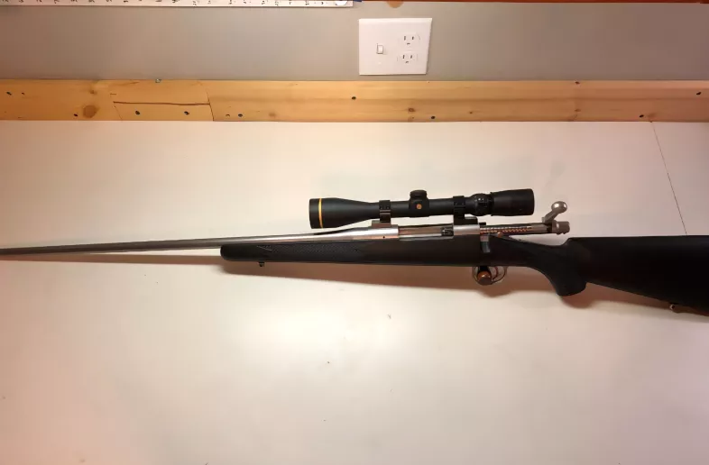 Left hand SS custom 240 Weatherby. Bench mark #1 1-8 twist 25" Barrel.McMillian edge shorter stock and SS Remington action weight is 6lbs 6oz with out scope and bases. Has a PTG Oberndor floor plate and Tinmey trigger. Scope not included in price. Do have reloading supplies and dies for it at a Extra.