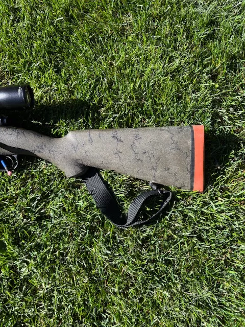 270 wsm in a wildcat stock with a jury barrel finished at 24”. The rifle was built by Bob Galloway and has been rock solid. There is a vortex razor LHT 2-10x40 sitting in talley rings on top. This rifle has been my primary hunting rifle the last few years and has proven to be very accurate with a variety of loads.