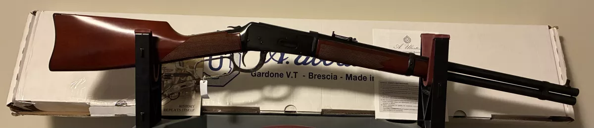 Uberti, a division of Beretta, has recreated the Winchester 1894 - the Gun that Won the West. Right down to the blued action with colorcase lever, top ejection, concave steel buttplate and straight walnut stock. This gun is made in Italy and new unfired condition.