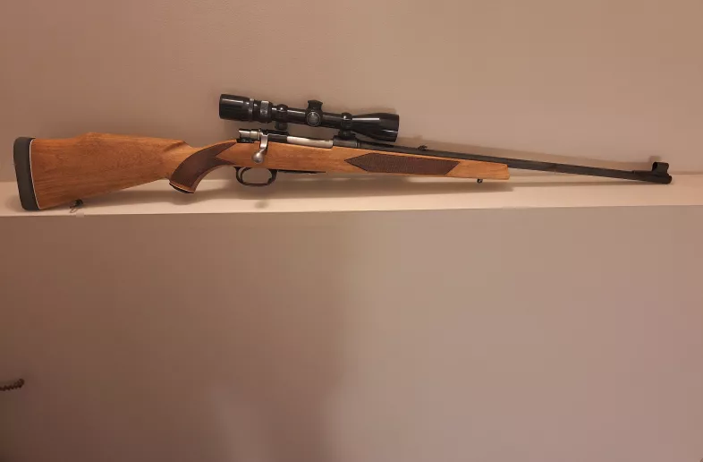 Parker Hale in 308 Win. Mauser 98 action. All wood and steel, no plastic. Very good condition. Iron sights and a 3 - 9 x 40 scope, bases & rings. Glass is clear. New limbsaver recoil pad. $800.00 OBO, open to trades. Must have a valid PAL. Will not answer "is this still available" 780 554 8780.