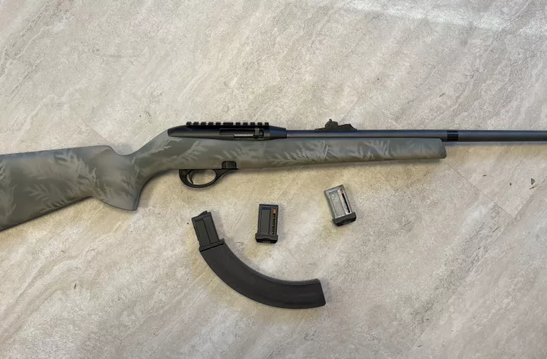 Remington 597 with two 10 rd mags and one 25 rd mag
