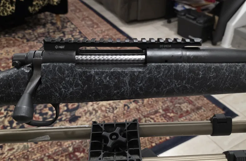 40 rounds down the pipe with proper brake in. Beaded. Timney trigger. MDT 20 moa rail. Treaded 24" Barrel. Sub moa groups.