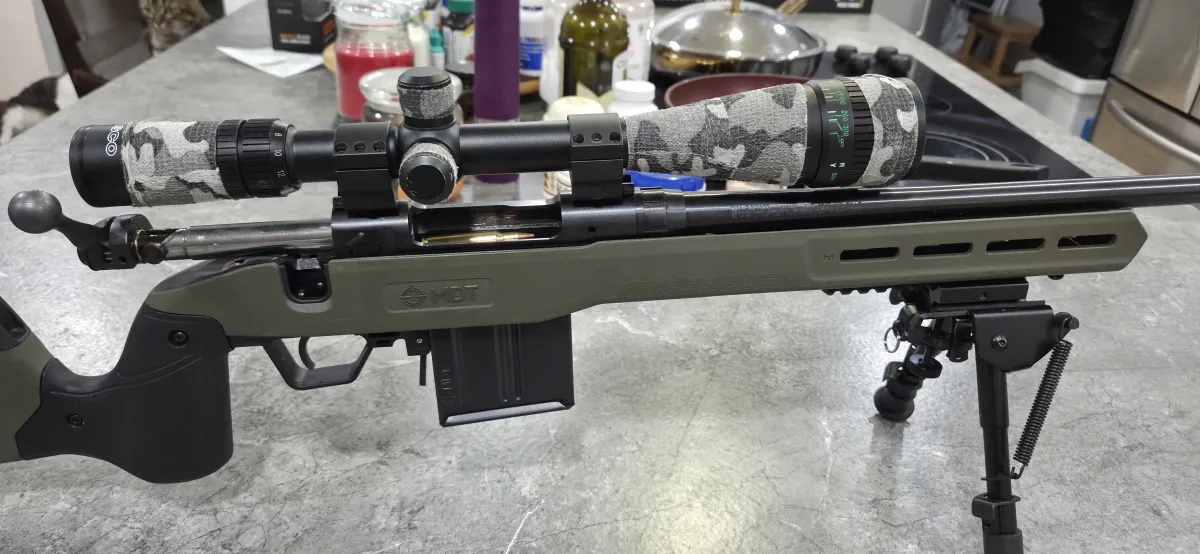 Many additions to this excellent shooting rifle. Rifle Basix trigger (can go down to 1.5 lb) MDT field stock($400) 10 round AICS 22-250 magazine box($110.00), tactical rings($60.00) , bipod. Has a Tasco 6-24 x 40mm scope. shoots fantastic and looks awesome. $1400.00 total investment but looking for a decent return $950.00. PAL a must and shipping on your dime.