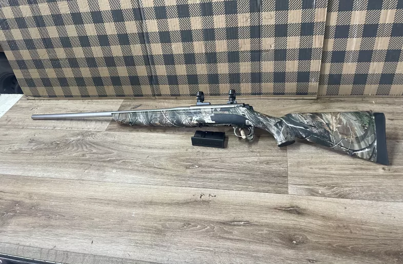 Remington 770 300 win mag stainless ,with 30 mm .scope rings ,camo ,camo peeled on left hand side of reciever working as it should, removeable magazine ,no trades shipping available