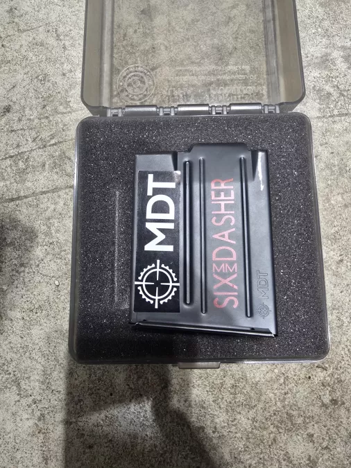 This is a tikka action with a 6mm dasher barrel from IBI with a 1:7.5 twist rate, it's in an MDT XRS chassis with the enclosed fore end.