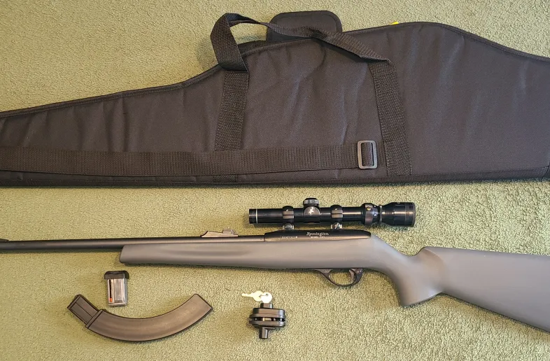 Lock with keys, 25+ round mag, 10 round mag and soft case