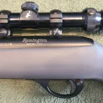 Remington 597 22 LR semi auto with grey synthetic stock and open sights