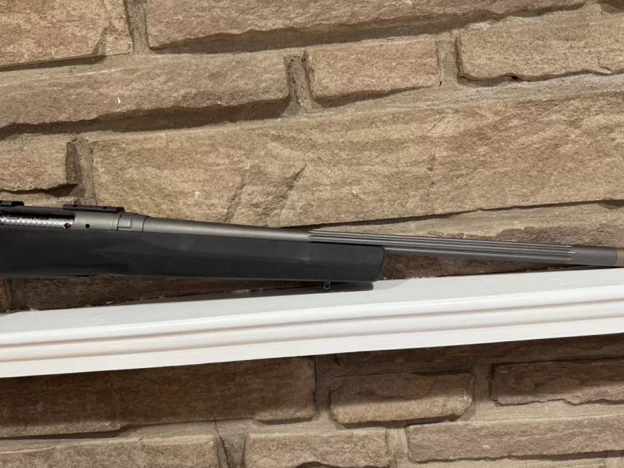 Hogue stock w/ varmint flutted barrel w/ threaded cap
