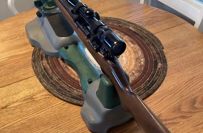 Good 30-06 with mauser action,hooded front sight,rear sight and has weaver bases and Bushnell Buckhorn 3x9 scope.Stock and bluing in good condition