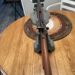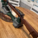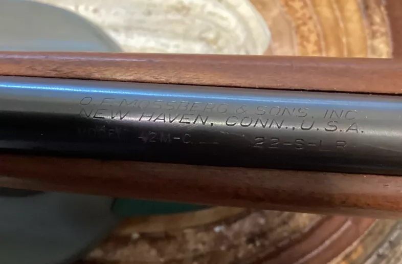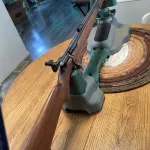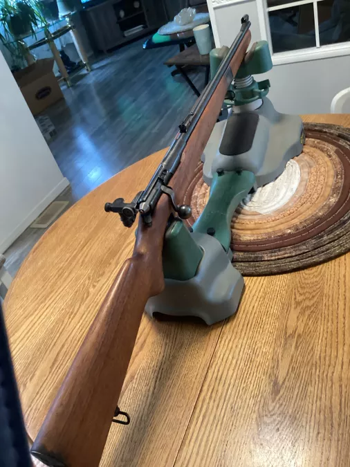 This Mossberg has 7 shot detachable magazine and receiver 130 peep sight,open rear sight and hooded ramp front sight with multiple inserts.Has 2 piece mannlicher stock with cheek piece and pistol grip.Has both sling swivels,trap door in butt for extra clip,and bolt cover.