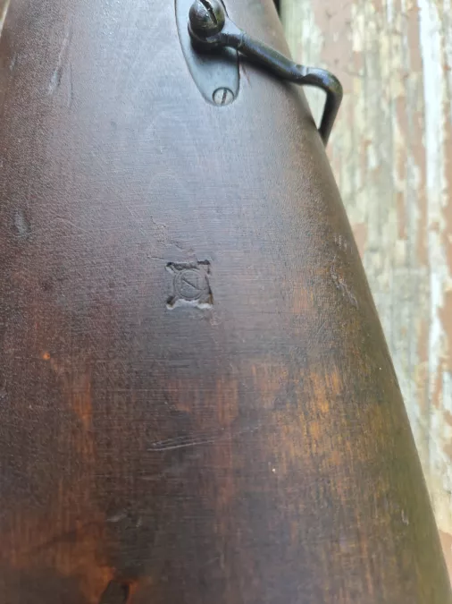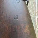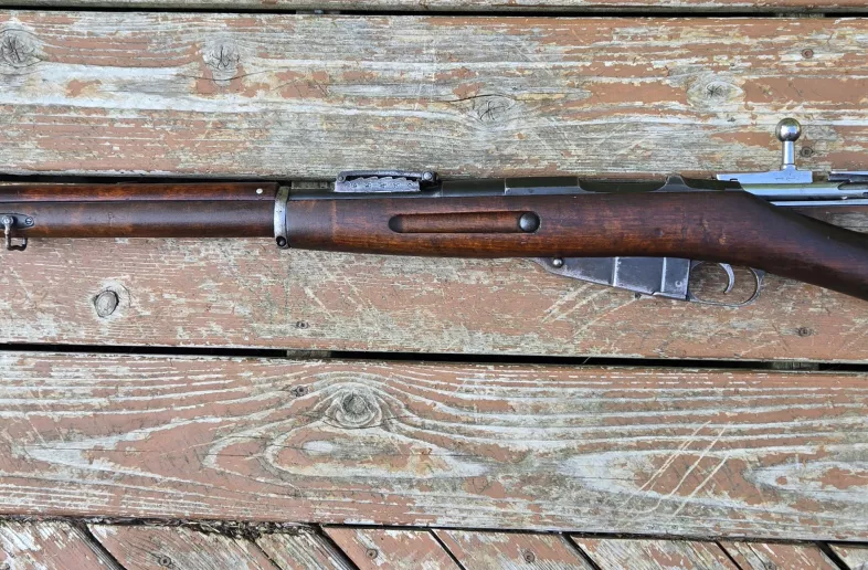 The bolt and trigger are very smooth. The side of the front barrel band has a wood screw holding the barrel band on, common on earlier finnish mosins. The stock is fitted with finnish style sling swivels. The handguard has a chip out of it that was done by a previous owner at some point in the rifles life.