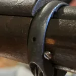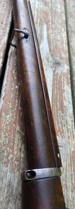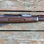 The bolt and trigger are very smooth. The side of the front barrel band has a wood screw holding the barrel band on, common on earlier finnish mosins. The stock is fitted with finnish style sling swivels. The handguard has a chip out of it that was done by a previous owner at some point in the rifles life.