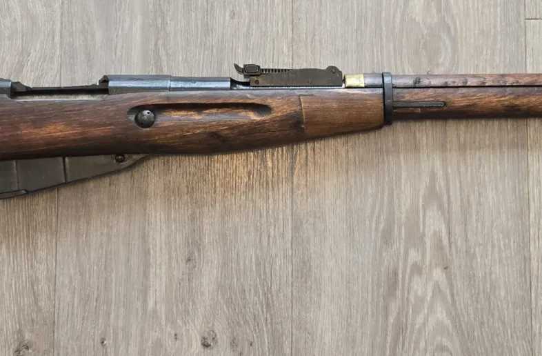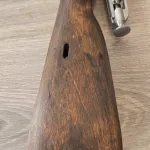 The stock has a repair that looks to have been done by the Finns. The bolt matches the rifle and the majority of the parts in the rifle are from the Izhevsk arsenal. The rear action screw is stuck.