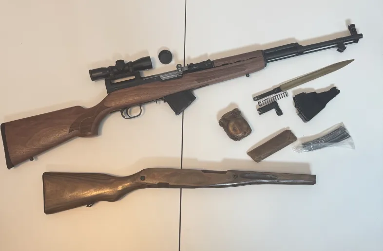 For sale is a Russian SKS with walnut stock. Dust cover with scope mount, fitted quite well.