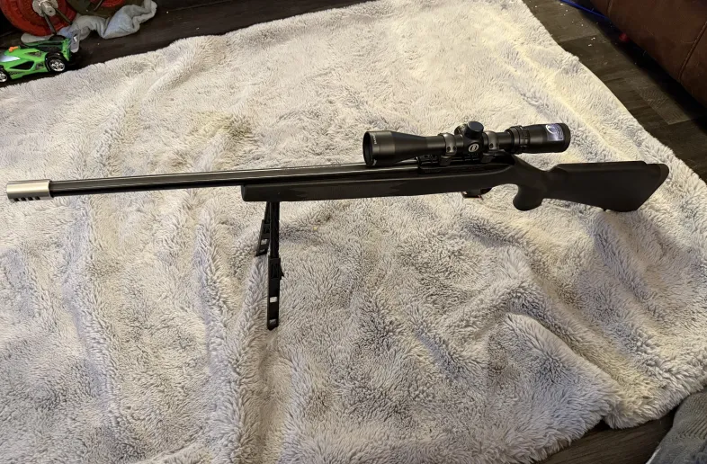 Beautiful built Ruger 10/22 with bipod built into stock. This things is very accurate and very fun to shoot. Target barrel installed with ported muzzle break, long mag dump adapter, rings and bushnell 3x9 scope installed. Very immaculate gun, msg for more details