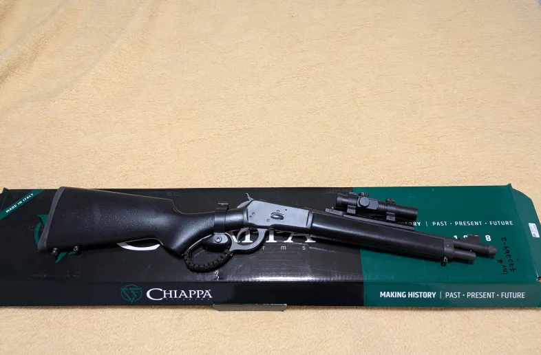 Chiappa 1892 Carbine NSR Lever-Action Rifle with Bushnell red dot. Mint condition with 10 rounds fired through it. Looking to sell or trade for a good condition semi shotgun for duck hunting.