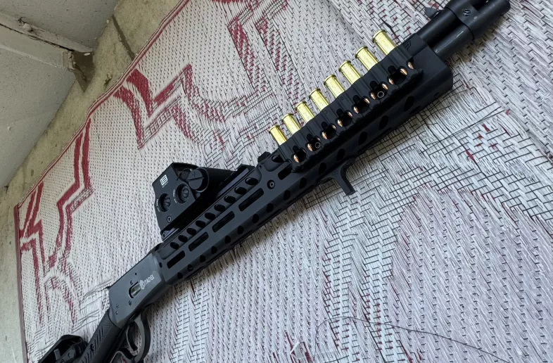 Chambered in .357 (also takes .38 special) This rifle is a blast to shoot and is decked out with some of the beautiful Ranger Point Precision goodies