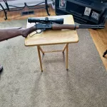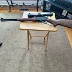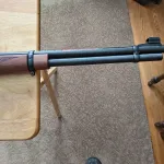 Gold-colored trigger. Has a Cabela's Lever-Action Rifle Scope nothing fancy. NO shipping and if you need ammo , i have 5-7 boxes of mixed ammo, we can talk about price with the gun in private pm 1500.00 firm and no trades