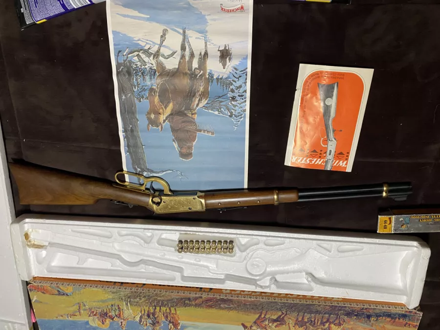 Winchester model 94 Cheyenne , repeating carbine never fired with all original paperwork, posters, and ammunition. Box has normal wear and tear for its age but as you can see in the pictures, it is in great condition. Serious inquiries can FaceTime prior to coming to see the gun as it is exactly as advertised unfired brand new inbox.
