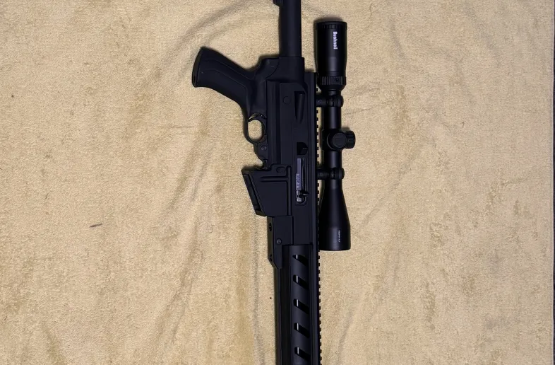 This is a beautiful ruger 10/22 with a ruger ar stock added. I think it’s before the Ruger model sr came out but I’m not sure. Stamped Ruger right on the stock. This things clean with a brand new bushnell trophy xlt 3x9x40 scope. This gun has a flash arrest on it along with 6 position length of pull. This things gorgeous and a lot of fun. Message for more details.