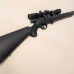 Less than 100 rounds shot through it, incredibly accurate little rifle. Comes with Baush & Lomb 1.5-6x36 scope and will throw in a soft case and left over rounds of ammo (approx 20 rounds)