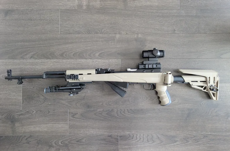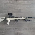 I have a Russian SKS (numbers don't match) in FDE ATI folding stock. It has a NC Star scope mount and comes with a monstrum blackbird 5x prism optic and a bipod.