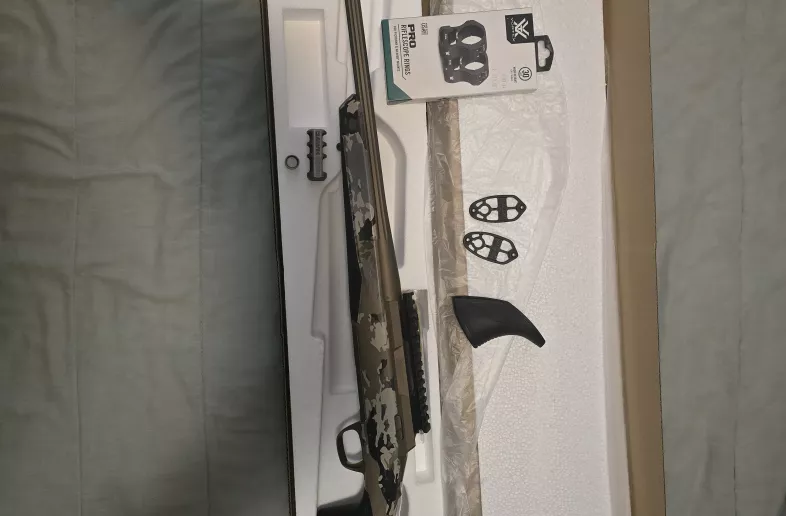 New in box Browning xbolt2 speed 308 win in smoked bronze cerakote fluited barrel spiral fluited bolt comes with bubble level rail vortex pro 30mill high rings recoil hawg muzzle break radial muzzle break 2 extra length of pull spacers traditional and pistol grip 2 boxes of hornady precision hunter 178 grain eld-x asking 2000 no shipping no trades as im trying to fix my truck pal is a must willing to meet in lytton bc