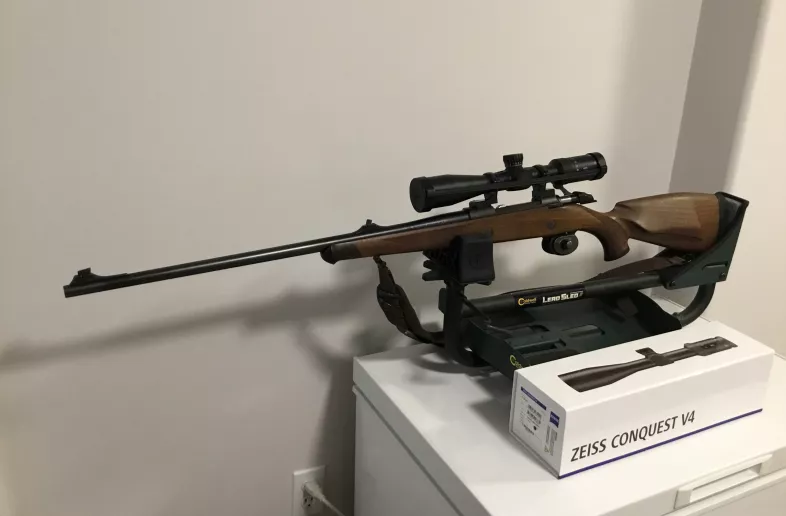 Sako Bavarian 85 with Ziess 4x16x44 scope with Z plex. Mounted on Optilock mounts and rings. Gun has about 30 rounds through it. Ammunition also.
