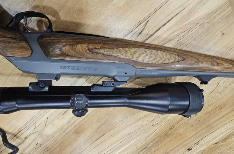 Sauer 202 in 300wby. I'm second owner. First owner ordered a custom laminate stock from sauer as well as had all metal parts are cerakote. this rifle is 100% weatherproof and ready for any season hunt you can throw at it.