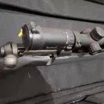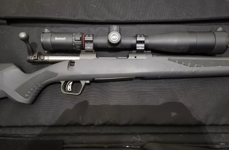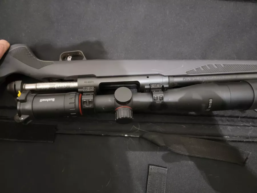 Savage 110 with a bushnell nitro scope and high qualit rings. One of my most accurate hunting rifles.