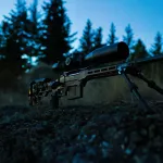 - 26-inch carbon steel button-rifled barrel fixed 3 port muzzle brake