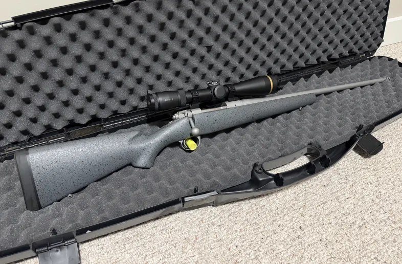 The Rifle has a Benchmark 5R, 1:8 Twist, #2 contour Stainless barrel, finished at 24” with a threaded Muzzle Brake