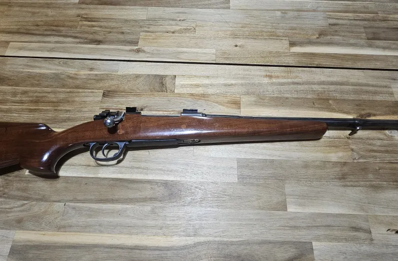 8mm, trap door with new stock and scope bases. Needs a recoil pad. Great project to put your finishing touches on it.