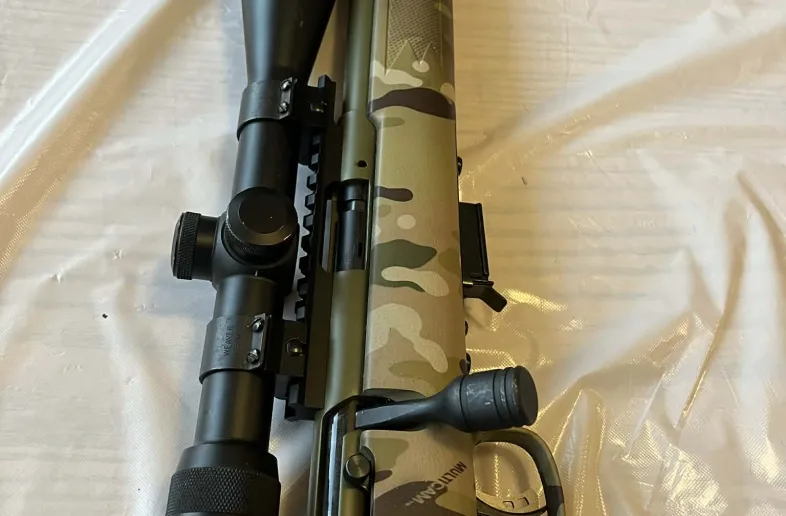 Savage Model 93R17 FV-SR Bolt Action Rifle 17HMR 16.5" Fluted Threaded Barrel Bazooka Camo 1x magazine.$450 for gun or $750 with Bushnell Legend Ultra HD 4.5-14x scope.