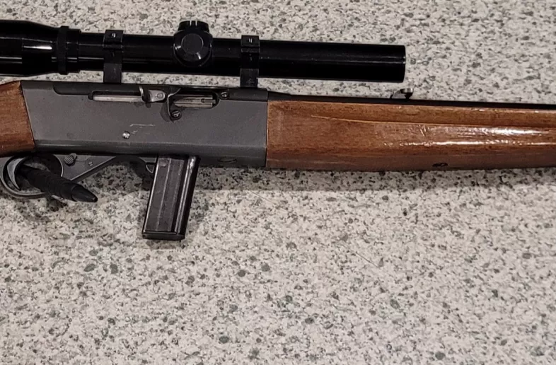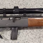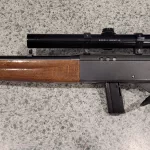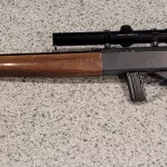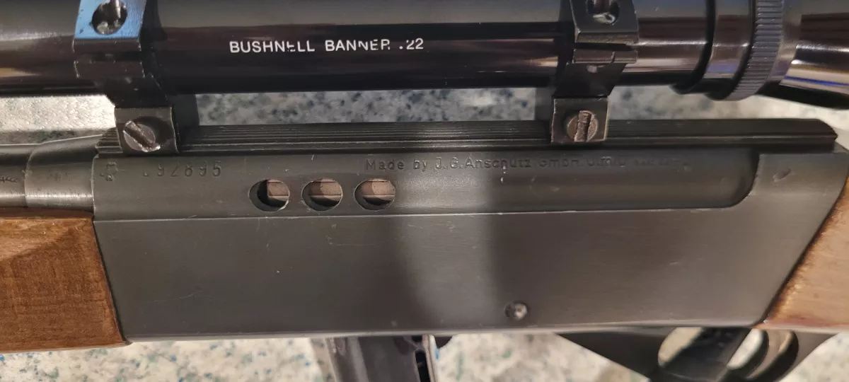 Anschutz 520/61 .22 semi auto rifle. Has the factory shell deflector which is almost always gone. Comes with a Bushnell Banner scope. Flip up rear sight. Barrel has some wear and bluing fading.