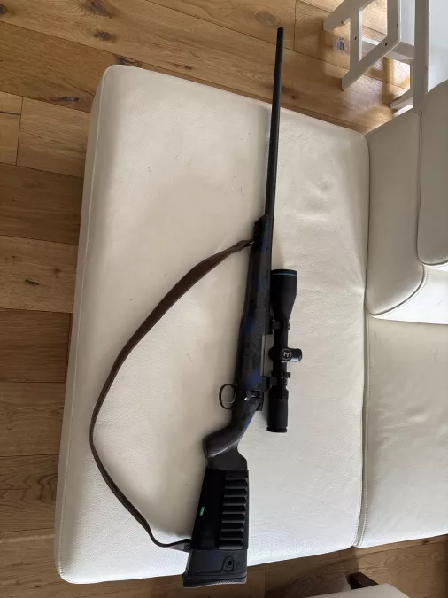 Custom built by corelanes Gunwerks action and stock , Wilson carbon barrel with muzzle brake, huskamaw blue diamond 5-20 power scope with lever bubble, approximately 80 rounds fired through the rifle, excellent condition and what a terrific shooter it is , hunter elite trigger set at 2 lbs .