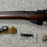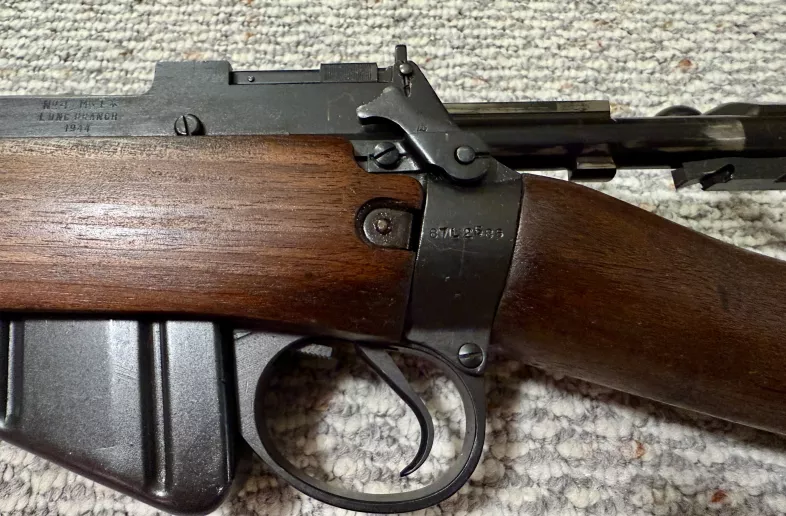 I have a Long Branch No 4 Mk 1* built in 1944. It has a 5 groove barrel, Canadian Walnut furniture with appropriate markings and all LB marked metal parts. Bolt and receiver numbers match. The butt plate is alloy. I believe the rifle has been refurbished at some point due to the overall condition. The bluing looks to be original, as there is no evidence of re-bluing.
