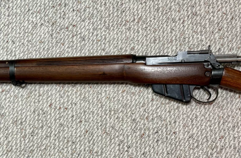 I have a Long Branch No 4 Mk 1* built in 1945. It has a 5 groove barrel, Canadian Walnut furniture with appropriate markings and all LB marked metal parts. Buttplate is steel. Bolt and receiver numbers match. I believe the rifle has been refurbished at some point as it is really nice overall, but the bluing appears original.
